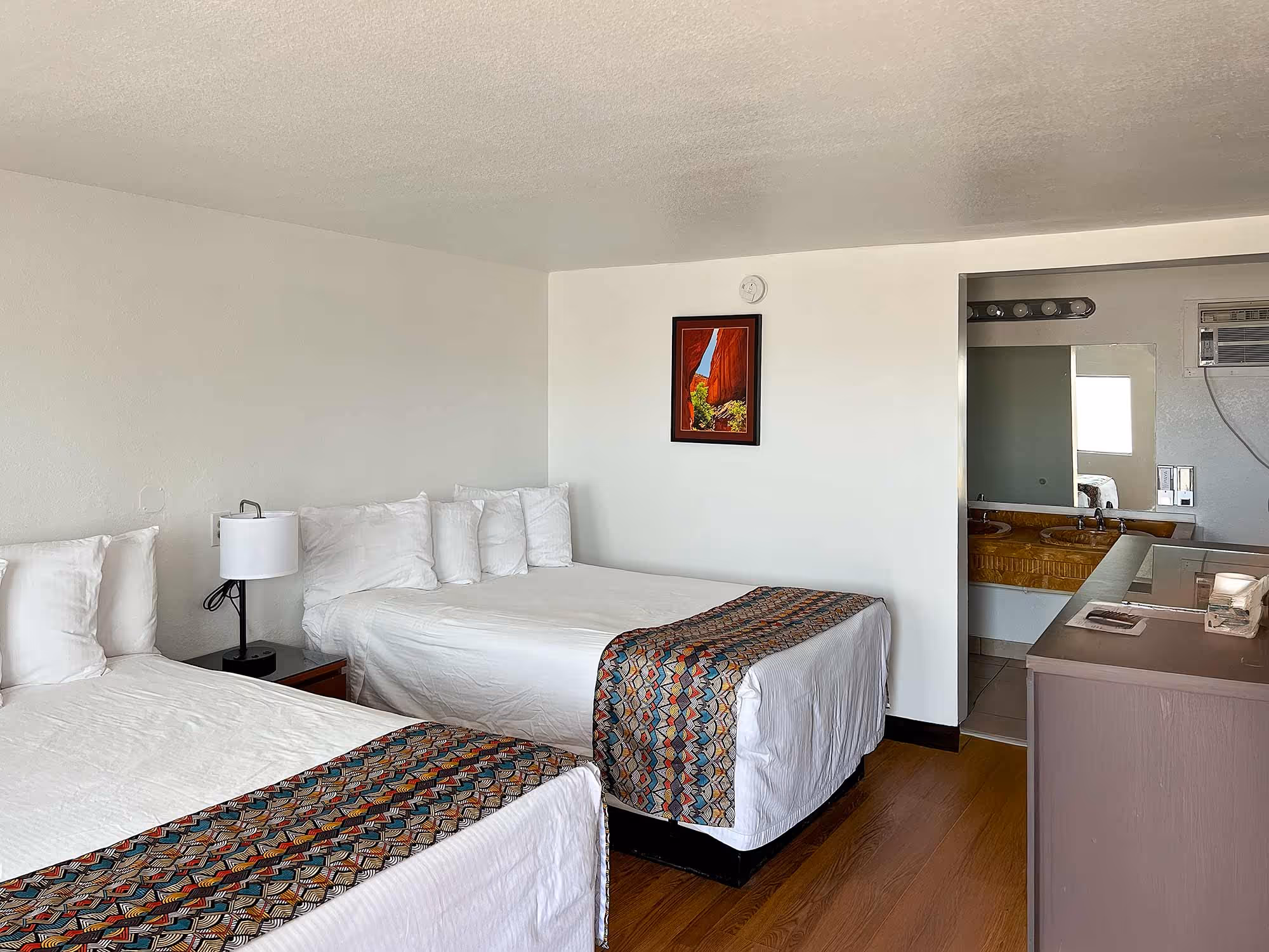 Perfect for families or small groups, our Double Rooms feature two double beds and all the essentials for a comfortable stay. Each room includes a microwave, mini fridge, coffee maker, hair dryer, private climate control, a flat-screen TV, and free Wi-Fi.